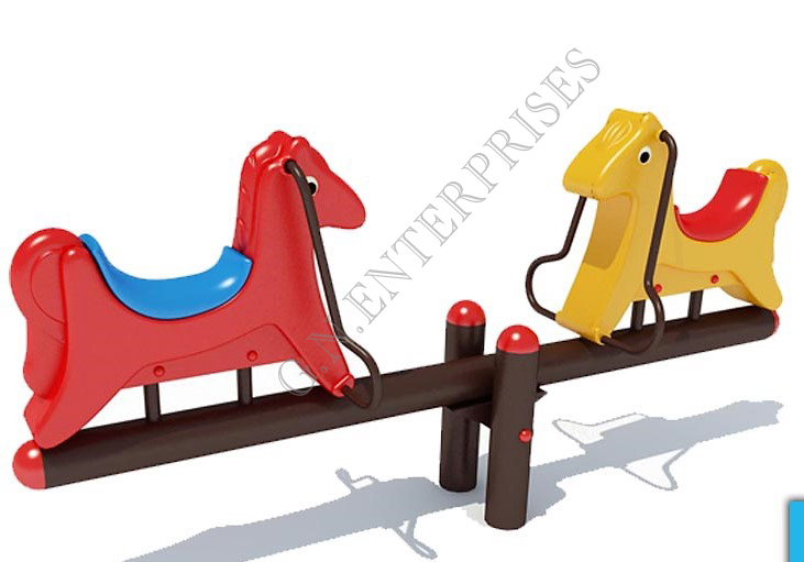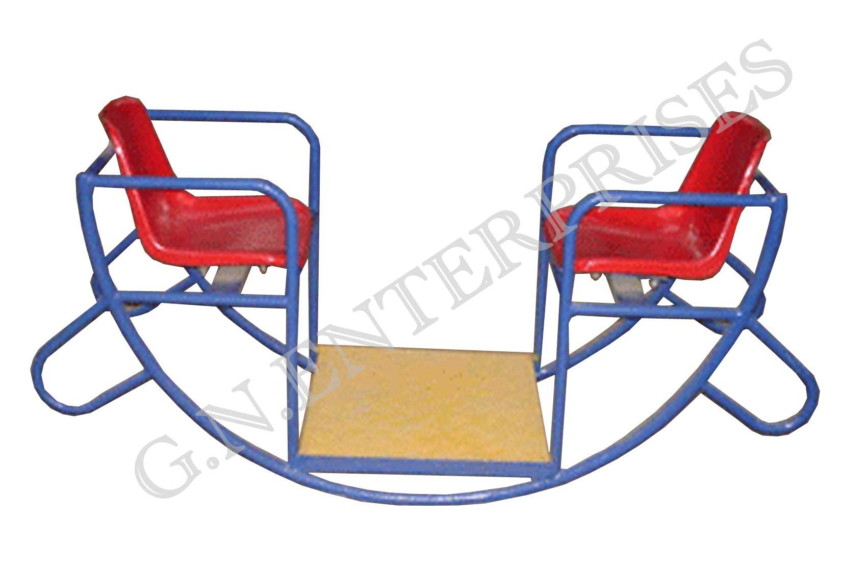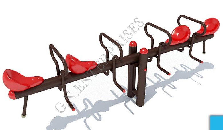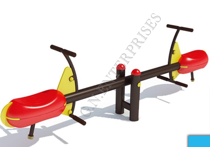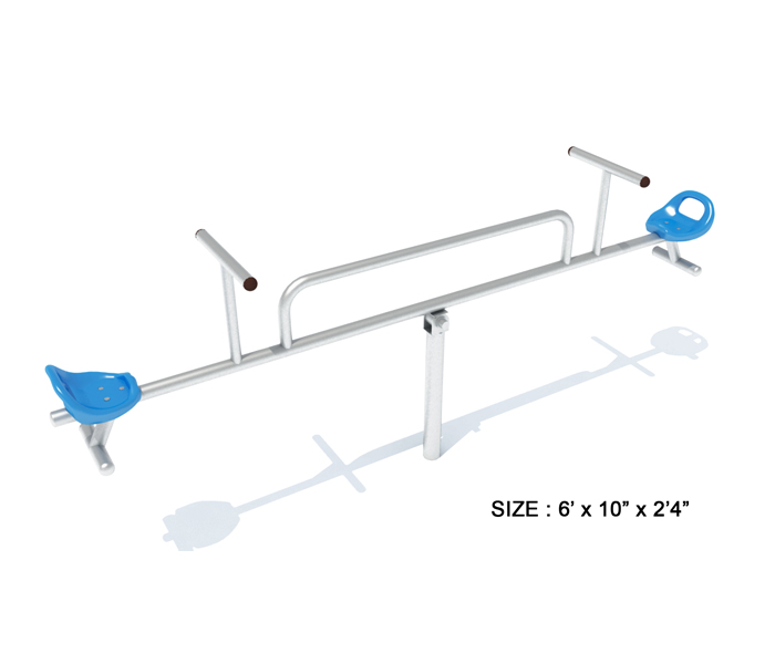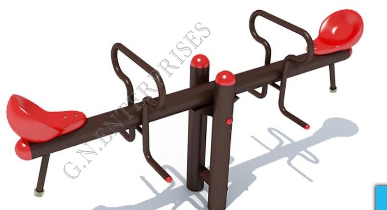 Keeping kids moving is one of the most important features of the playground. A person sits on each end, and they take turns pushing their feet against the ground to lift their side into the air.